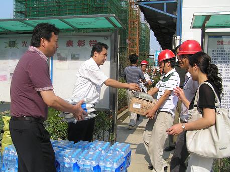 7月26日下午,安徽建工集團(tuán)工會(huì)副主席李鵬飛一行在省三建副總經(jīng)理駱新農(nóng)的陪同下,來到該公司高速·濱湖時(shí)代廣場(chǎng)二期項(xiàng)目部和亞華名苑二期項(xiàng)目部“送清涼”。將綠豆、白糖、礦泉水等防暑降溫食品送到工地,受到了職工歡迎。