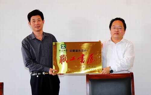 4月27日下午,安徽省總工會副主席陳平、宣傳部部長唐定永在安徽建工集團(tuán)工會副主席李鵬飛等領(lǐng)導(dǎo)的陪同下,到安徽建工技師學(xué)院出席“職工書屋”省級示范點(diǎn)授牌儀式。