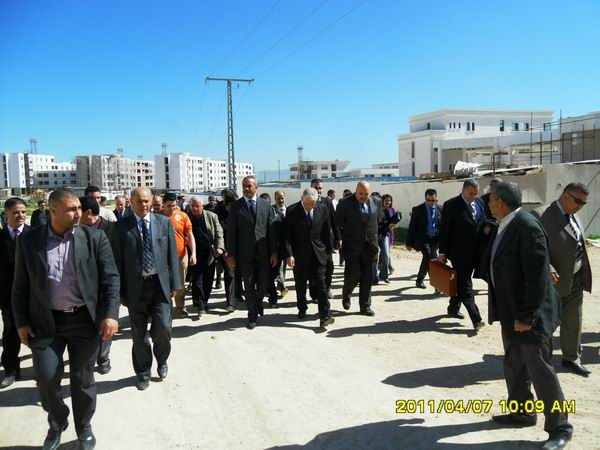 2011年4月7日,阿爾及利亞國(guó)家教育部部長(zhǎng)蒞臨我實(shí)施的康斯坦丁大學(xué)城項(xiàng)目視察指導(dǎo)工作,康斯坦丁省長(zhǎng)、全國(guó)大學(xué)生委員會(huì)領(lǐng)導(dǎo)、DLEP局長(zhǎng)及當(dāng)?shù)馗鹘缑襟w隨同前往。