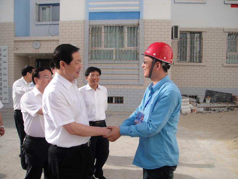 在施工現(xiàn)場,張寶順等興致勃勃地參觀了援疆干部保障樓工程的建設(shè),并認(rèn)真聽取了援疆指揮部指揮長聶愛國和工程項(xiàng)目經(jīng)理樊剛對(duì)工程情況的介紹。當(dāng)了解到工程進(jìn)度、質(zhì)量、安全文明等情況良好時(shí),張寶順十分滿意。他指出:援疆干部保障樓工程是關(guān)系到安徽省援疆干部的生活問題,只有解決了后顧之憂,援疆的同志們才能更好的把精力投入到援疆的事業(yè)中去。安徽三建做的很好,保障樓做的很漂亮,在這里的同志們也很辛苦,工程按照省委省政府的要求,搶抓時(shí)間,高質(zhì)量嚴(yán)要求的完成了,希望再接再厲,做好后續(xù)建設(shè)工作。