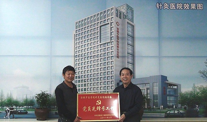 9月26日下午,集團公司黨委副書記、副董事長李長斌,在集團黨委工作部主任胡建英、國內(nèi)公司總經(jīng)理陳傳文等相關(guān)人員的陪同下,到安徽中醫(yī)學(xué)院附屬針灸醫(yī)院綜合病房大樓施工現(xiàn)場,為其項目爭創(chuàng)集團公司“黨員先鋒號工程”授牌。