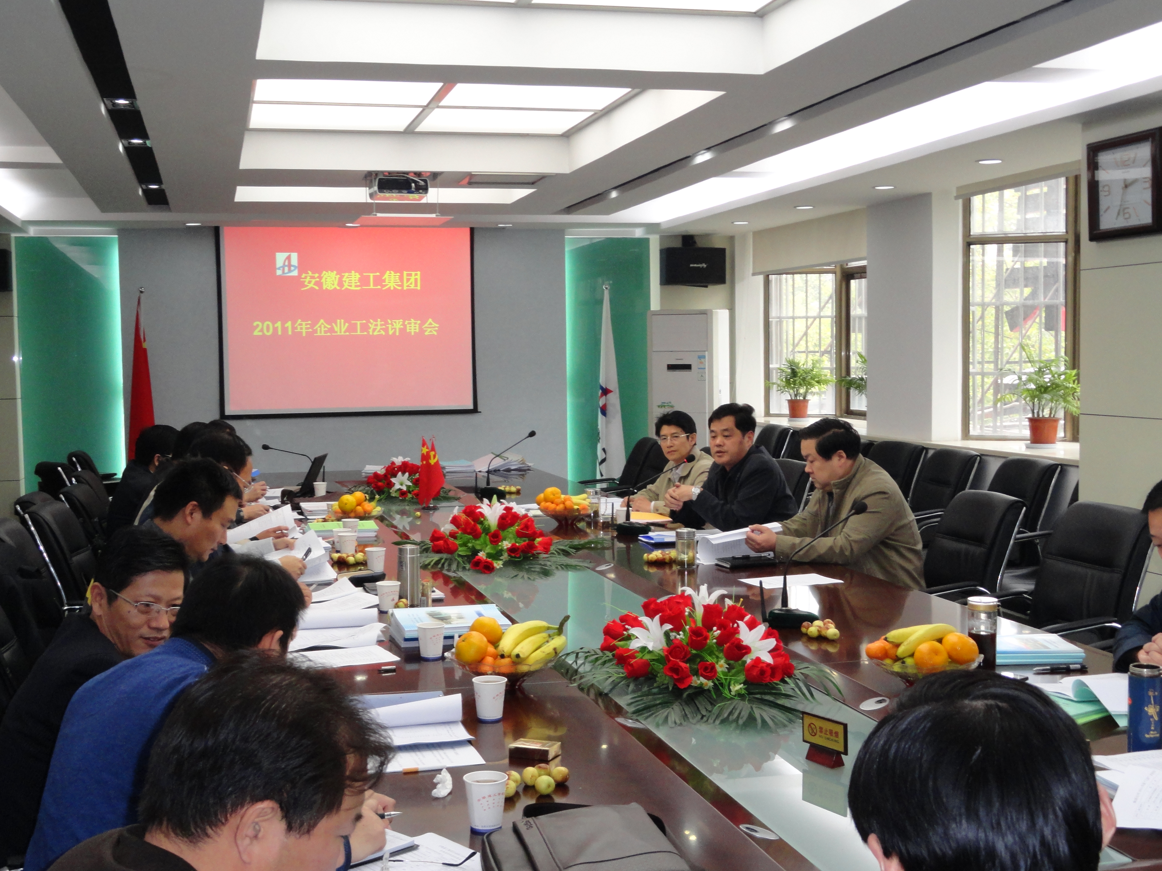 2011年10月27日下午,安徽建工集團(tuán)技術(shù)質(zhì)量委員會(huì)在建工大廈三樓會(huì)議室召開了2011年度企業(yè)工法評(píng)審會(huì)。集團(tuán)公司副總經(jīng)理、總工程師戴良軍,總經(jīng)理助理、生產(chǎn)管理部主任郭道真,總工辦主任陳剛及相關(guān)專家參加了本次評(píng)審會(huì)。會(huì)議由集團(tuán)公司總工辦主任陳剛主持。評(píng)審采用主副審制,評(píng)委們對(duì)各企業(yè)上報(bào)的48項(xiàng)工法資料逐一進(jìn)行了評(píng)審,對(duì)部分工法提出了修改完善意見,最終,巖棉板薄抹灰外墻外保溫系統(tǒng)施工工法、先張法預(yù)應(yīng)力離心混凝土空心方樁靜壓施工工法等43項(xiàng)工法評(píng)為集團(tuán)公司2011年度第二批企業(yè)工法,評(píng)委會(huì)同時(shí)建議集團(tuán)將30多項(xiàng)技術(shù)含量較高的工法申報(bào)省級(jí)工法。