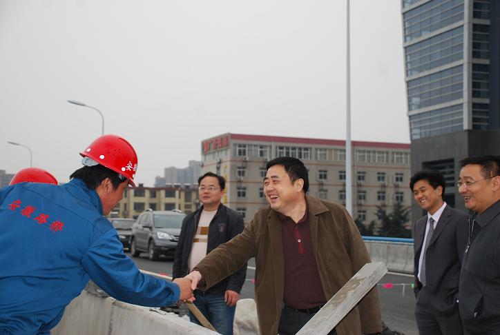 胡董事長(zhǎng)一行首先視察了即將完工的合肥市政重點(diǎn)工程——合作化南路高架1標(biāo)。在省路橋公司總經(jīng)理汪衛(wèi)東、黨委書記陳光磊等有關(guān)領(lǐng)導(dǎo)的陪同下,胡董事長(zhǎng)登上高架橋,沿途視察了工程建設(shè)情況。即將完工的高架橋已經(jīng)展現(xiàn)雄姿,施工人員正在緊張忙碌著,胡董事長(zhǎng)走上前與他們握手交談,并仔細(xì)了解施工新技術(shù)、新工藝、新材料應(yīng)用情況。當(dāng)胡董事長(zhǎng)聽說合作化南路高架因進(jìn)度快、質(zhì)量好、安全文明施工受到合肥市領(lǐng)導(dǎo)及有關(guān)部門的多次贊揚(yáng)時(shí),胡董事長(zhǎng)欣慰的笑了。胡董事長(zhǎng)指出,合作化路高架橋建設(shè)體現(xiàn)了路橋公司在整合資源上的獨(dú)到之處,這條路也是他所看過的最好的一條路,安徽路橋公司不愧為安徽路橋行業(yè)的第一品牌!