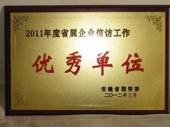 安徽建工集團(tuán)榮獲“2011年度省屬企業(yè)信訪工作優(yōu)秀單位”榮譽(yù)稱號