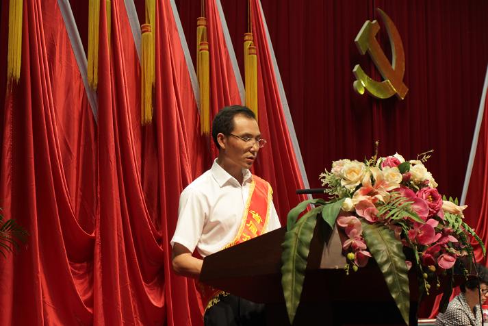 省三建公司項(xiàng)目經(jīng)理吳明寬同志作為優(yōu)秀共產(chǎn)黨員代表上臺(tái)領(lǐng)獎(jiǎng),并做了先進(jìn)事跡交流發(fā)言。