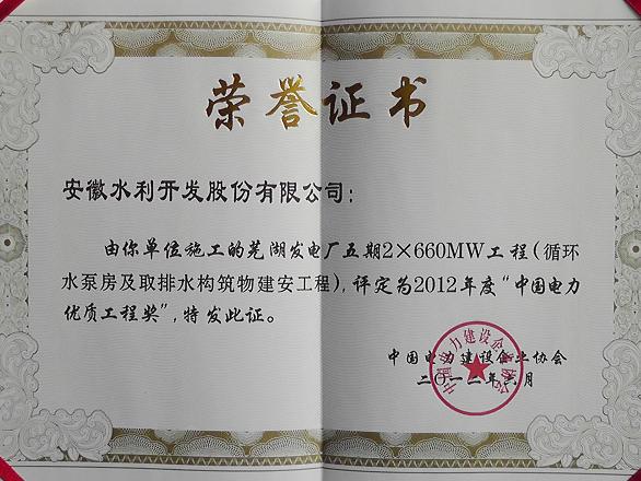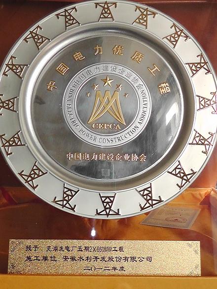 近日,安徽水利再添新榮譽(yù),由安徽水利承建的蕪湖發(fā)電廠五期2×660MW工程(循環(huán)水泵房及取排水構(gòu)筑物建安工程)經(jīng)中國(guó)電力建設(shè)企業(yè)協(xié)會(huì)考評(píng)研究,被授予2012年度“中國(guó)電力優(yōu)質(zhì)工程獎(jiǎng)”。