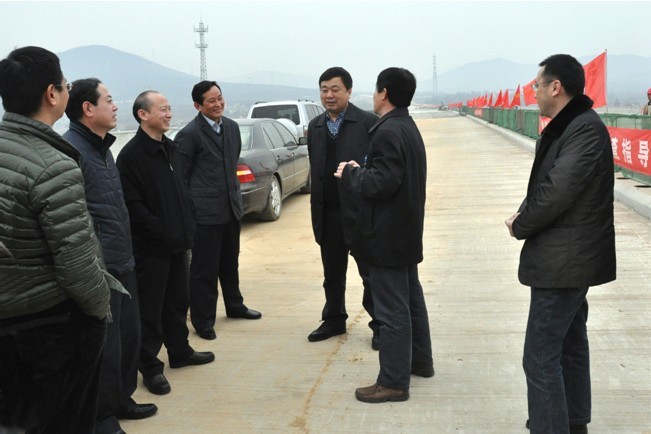2013年1月20日,省交通集團(tuán)董事長(zhǎng)喬傳福,副總經(jīng)理王宏祥,建管部部長(zhǎng)施建剛一行赴北沿江高速馬巢段建設(shè)項(xiàng)目進(jìn)行慰問(wèn)并指導(dǎo)工作。建工集團(tuán)副董事長(zhǎng)、總經(jīng)理趙時(shí)運(yùn),副董事長(zhǎng)李長(zhǎng)斌,副總經(jīng)理、總工程師戴良軍,紀(jì)委書記、工會(huì)主席牛曙東,省路港公司總經(jīng)理朱忠明、安徽水利交通分公司經(jīng)理葉明林,以及馬巢路01標(biāo)和02標(biāo)負(fù)責(zé)人陪同考察。