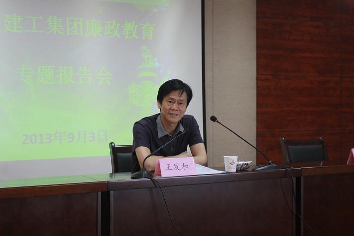 根據(jù)安徽建工集團黨的群眾路線教育實踐活動的安排,9月3日,省紀委紀檢監(jiān)察室主任王發(fā)和應邀為安徽建工集團中層以上管理人員、關鍵崗位負責人、項目經(jīng)理和黨支部書記代表共200多人上了一堂題為《結合案例談國有企業(yè)反腐倡廉建設幾點思考》的專題廉政教育講座。集團公司黨委書記、董事長趙時運主持講座。