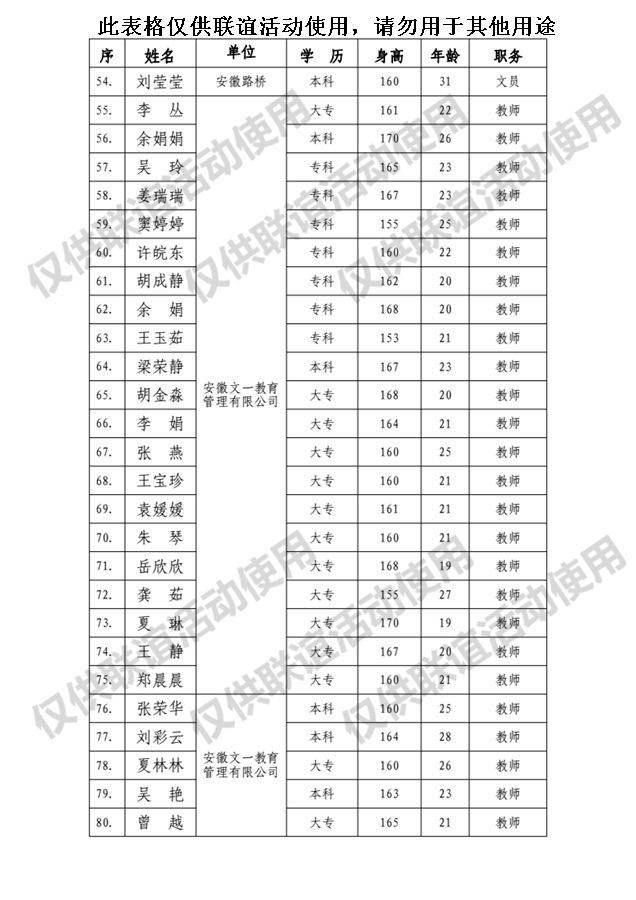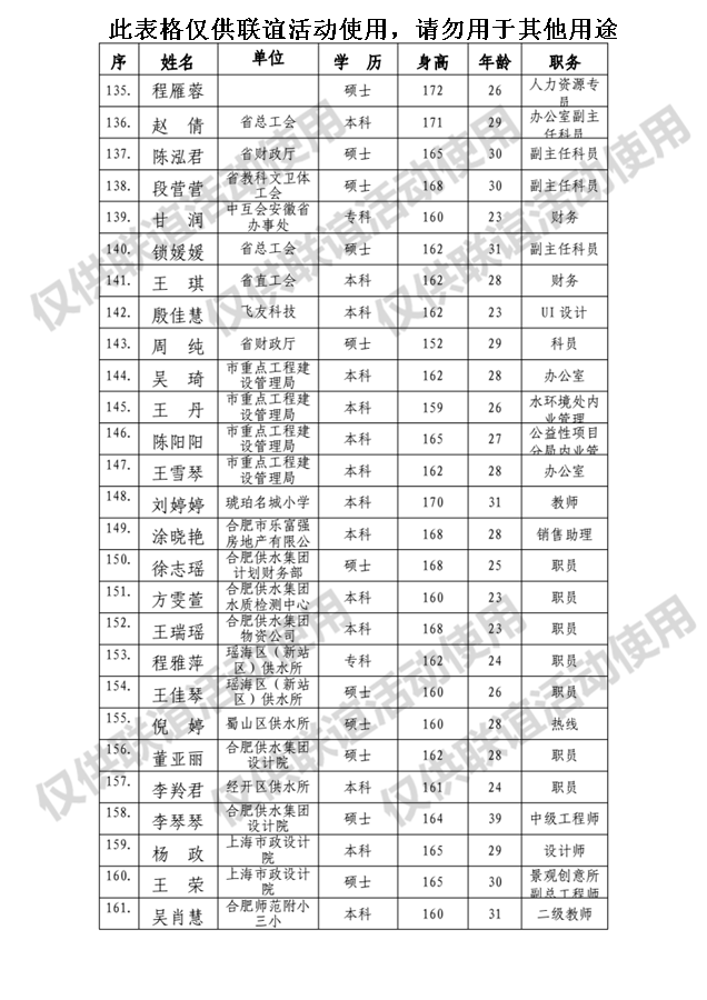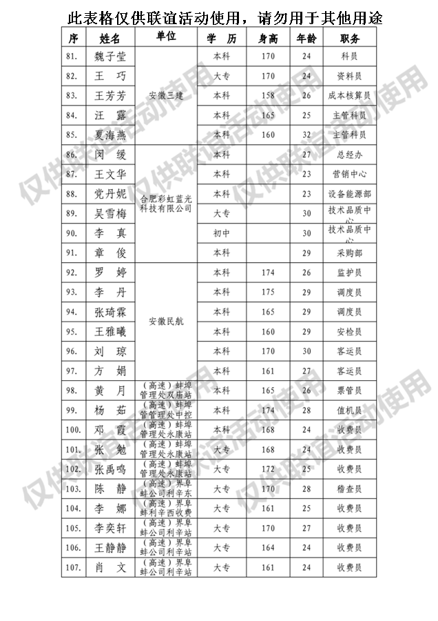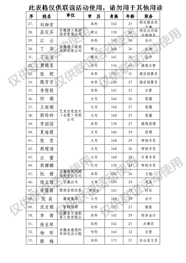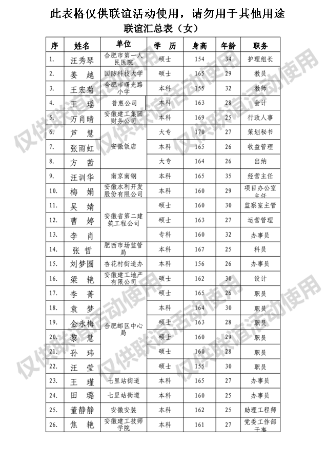 安徽建工集團(tuán)未婚青年交友聯(lián)誼活動(dòng)報(bào)名匯總表(女)