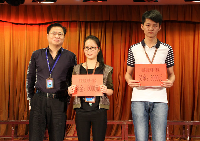 5月27日下午,我校在學(xué)校禮堂舉行技能大賽頒獎(jiǎng)典禮。校長(zhǎng)張衛(wèi)東,黨委書記錢森林,副校長(zhǎng)任建設(shè)、周元清、呂良玉,紀(jì)委書記、工會(huì)主席龔維加和學(xué)生處、三系負(fù)責(zé)同志參加了頒獎(jiǎng)典禮。周元清副校長(zhǎng)在典禮上宣讀了《關(guān)于職業(yè)院校技能大賽獲獎(jiǎng)情況的通報(bào)》,并對(duì)全校師生提出了一下幾點(diǎn)希望:希望獲獎(jiǎng)的選手戒驕戒躁,再接再厲,再創(chuàng)佳績(jī);希望廣大學(xué)生向獲獎(jiǎng)同學(xué)學(xué)習(xí),學(xué)習(xí)他們刻苦學(xué)習(xí)鉆研精神;希望廣大教職員工繼續(xù)深化教學(xué)改革,強(qiáng)化學(xué)生綜合職業(yè)能力的培養(yǎng),不斷加強(qiáng)內(nèi)涵建設(shè),提高人才培養(yǎng)質(zhì)量,為實(shí)現(xiàn)“十三五”規(guī)劃做出更大貢獻(xiàn)。最后,學(xué)校領(lǐng)導(dǎo)給我校在2015年國(guó)家級(jí)和省級(jí)技能大賽上獲獎(jiǎng)的同學(xué)頒發(fā)了獎(jiǎng)金,以資鼓勵(lì)。