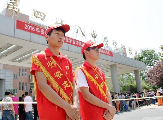 6月14日-16日是我省中考日,為弘揚(yáng)“奉獻(xiàn)、友愛、互助、進(jìn)步”的志愿服務(wù)精神,營造和諧的中考環(huán)境,安徽建設(shè)學(xué)校組織青年志愿者在合肥48中望湖校區(qū)考點(diǎn)開展了“為2016中考護(hù)航”活動,奉獻(xiàn)愛心,助力中考。