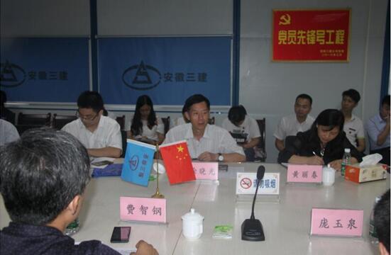 為深入貫徹中央群團(tuán)工作會(huì)議精神,進(jìn)一步落實(shí)團(tuán)干聯(lián)系團(tuán)員青年的制度,有序有力推動(dòng)共青團(tuán)工作改革創(chuàng)新, 6月23日,省國(guó)資委群眾工作處副處長(zhǎng)、團(tuán)工委副書(shū)記費(fèi)智鋼,應(yīng)邀到合肥市二院項(xiàng)目部參加安徽三建團(tuán)委專(zhuān)題開(kāi)放日活動(dòng),并為公司團(tuán)委獲得2015年度安徽省“五四紅旗團(tuán)委”授牌。省國(guó)資委團(tuán)工委龐玉泉、建工集團(tuán)工會(huì)主席、公司黨委書(shū)記徐曉光、建工集團(tuán)團(tuán)委書(shū)記王詩(shī)旵及公司紀(jì)委書(shū)記黃麗春、團(tuán)委書(shū)記張?chǎng)蔚扰阃?。公司在肥團(tuán)支部負(fù)責(zé)人、項(xiàng)目一線青年代表共30余人參加了開(kāi)放活動(dòng)。