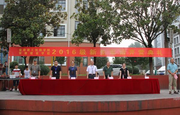 8月22日上午8點30分,安徽建工技師學院在學校操場召開2016級新生軍訓開營典禮。副院長呂良玉、保衛(wèi)處處長胡頻、學生處副處長王海、機電工程系黨支部書記朱曉玲、建筑經濟管理系黨支部書記李繼萍、建筑經濟管理系主任陸飛虎、軍訓教官李超隊長及所有新生班主任和全體新生參加了開營典禮。