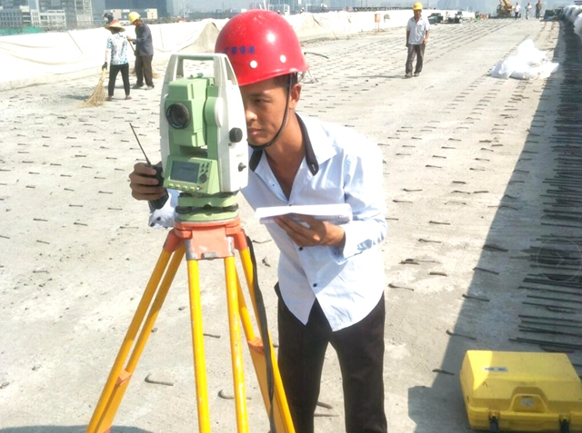 龍河路橋項目是市政橋梁工程,其測量工作精度要求極高,一分一毫的差距都會造成不可挽回的損失,測量員潘瑞 對自己的要求是“分毫都不能差,差分毫都不行”,將誤差控制到毫米級別是他的任務(wù),“左5毫米,后退3毫米?!笔撬詈唵?、最常說的一句話。白天的工作完成,晚上的工作接踵而至,首先是計算第二天需要的數(shù)據(jù),這樣就可以省去在現(xiàn)場計算的時間,提高工作效率,其次是完善相關(guān)資料,由于測量專業(yè)性強,無法配備專職資料員,所有測量資料都需要他自己完成。日積月累的測量工作,讓潘瑞的皮膚越來越黑,熟悉他的人都知道,這是風(fēng)吹日曬留下的印記,但他卻笑著說:“測量工作追求的是精準(zhǔn)和完美,是人生的樂趣?!?