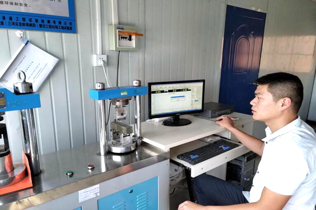 在S332安慶至望江改建工程項(xiàng)目進(jìn)行水泥混凝土施工時(shí),每天天色蒙蒙亮,就有一個(gè)人出現(xiàn)在攪拌站,調(diào)整當(dāng)天施工配合比,他就是試驗(yàn)員趙文。趙文每天要堅(jiān)持做不下二十組混凝土試塊,一組試塊近五十斤,這只是他工作的一部分,為了檢測(cè)每個(gè)環(huán)節(jié)的材料質(zhì)量是否合格,他還要對(duì)材料進(jìn)行取樣、送檢?!拔倚枰WC每個(gè)進(jìn)場(chǎng)材料的品質(zhì),不合格的產(chǎn)品絕不能用于施工,否則就會(huì)留下隱患?!壁w文說(shuō)。在最緊張的施工階段,他沒(méi)有休息過(guò)一天,常常與試驗(yàn)組的同事加班至深夜?!霸陧?xiàng)目部,所有人都在拼命工作,試驗(yàn)這個(gè)環(huán)節(jié)也不能‘拖后腿’!”就是這樣一種精神,支撐著趙文在試驗(yàn)領(lǐng)域一往無(wú)前。