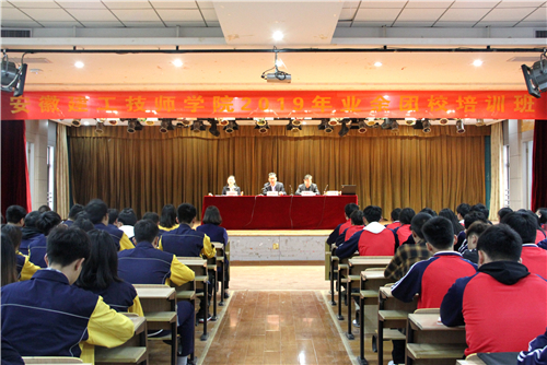 為進(jìn)一步貫徹落實(shí)共青團(tuán)改革工作,從嚴(yán)治團(tuán),選拔并發(fā)展一批素質(zhì)硬、能力強(qiáng)、品行優(yōu)的共青團(tuán)員,2019年4月22日17點(diǎn)30分,安徽建工技師學(xué)院2019年業(yè)余團(tuán)校培訓(xùn)班開班儀式在院禮堂舉行。學(xué)院黨委書記、院長(zhǎng)張衛(wèi)東、副院長(zhǎng)任建設(shè)、院團(tuán)委書記周曉瑛、團(tuán)委干事許欣璨、五系一部團(tuán)總支負(fù)責(zé)老師和入團(tuán)積極分子近700人參加儀式。