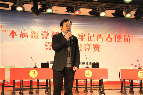 知識競賽伊始,學(xué)院黨委書記、院長張衛(wèi)東講話。他指出,院團委組織的本次黨團知識競賽緊緊圍繞學(xué)院主題教育中心,非常及時,非常必要。學(xué)習(xí)黨團知識不僅可以加深同學(xué)們對黨團理論、路線、方針的理解,進一步鞏固黨團基本理論和基本知識,也有利于推進和加強黨團意識教育,引導(dǎo)廣大黨、團員堅定共產(chǎn)主義理想信念。他希望所有的參賽隊員和觀眾們能切實增強“四個意識”、堅定“四個自信”、做到“兩個維護”,鮮明樹立起不忘初心的標(biāo)尺,堅決擔(dān)負起牢記使命的責(zé)任,熱愛祖國,熱愛學(xué)校,做新時代健康向上好青年。