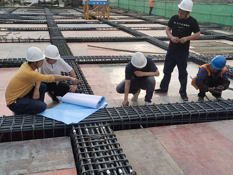 在不影響質(zhì)量的前提下要縮短工期,必須要科學(xué)組織和創(chuàng)新技術(shù)?!澳懿荒苡眯滦头浪牧蠅嚎s地下室施工工期?”第一次擔(dān)任項(xiàng)目技術(shù)負(fù)責(zé)人的青年職工吳鵬飛大膽提出建議。試試看!項(xiàng)目團(tuán)隊(duì)分頭行動(dòng),查閱資料、考察市場(chǎng)、詢(xún)問(wèn)同行,尋找新材料。最終發(fā)現(xiàn)一種高分子自粘膠膜新型防水卷材,不僅能提高防水性能,而且能省去防水保護(hù)層的工序,至少節(jié)省了2天工期!新材料的成果極大鼓舞了項(xiàng)目小伙子。