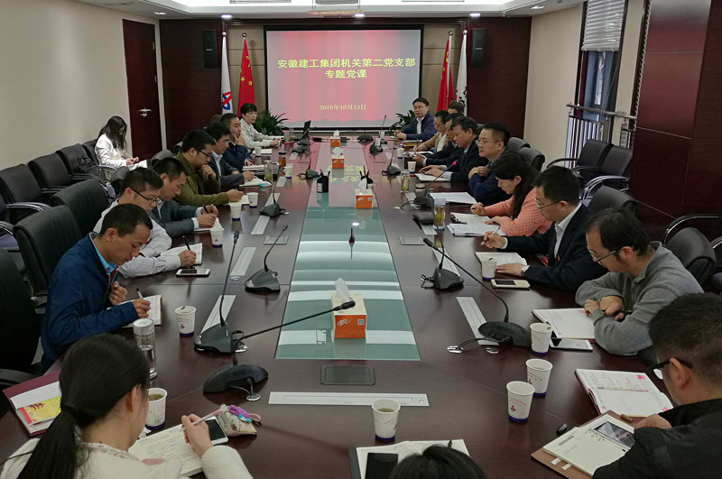 10月13日,在安建大廈2818會議室,應機關第二黨支部邀請,集團總經(jīng)理、黨委副書記劉家靜同志為機關第二黨支部全體黨員授了題為“緊密結合企業(yè)中心工作,貫徹落實‘兩學一做’學習教育”的專題黨課。第二支部黨員、群眾共27人參加學習,集團總會計師牛曉峰同志以普通黨員的身份參加會議并聽黨課。會議由第二支部書記朱金蓉同志主持。
