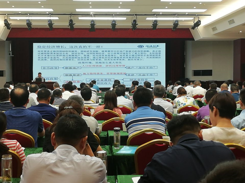 海通證券于博老師從我國(guó)國(guó)情出發(fā),緊密?chē)@人口紅利消退、舉債發(fā)展經(jīng)濟(jì),債務(wù)周期見(jiàn)頂、去杠桿四步曲,貿(mào)易摩擦再現(xiàn)、短期迎來(lái)休戰(zhàn),轉(zhuǎn)型勢(shì)在必行、經(jīng)濟(jì)緩慢筑底,降利率提估值、從實(shí)物到金融等五個(gè)方面,宏觀(guān)分析了國(guó)內(nèi)經(jīng)濟(jì)發(fā)展情況,并對(duì)2019年下半年經(jīng)濟(jì)及資本市場(chǎng)進(jìn)行了展望。本次講座內(nèi)容豐富翔實(shí)、圖文并茂,與會(huì)人員聚精會(huì)神地聆聽(tīng),并認(rèn)真地做筆記。