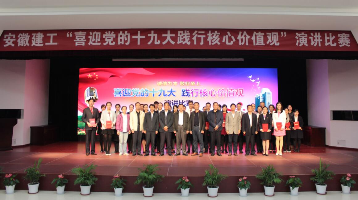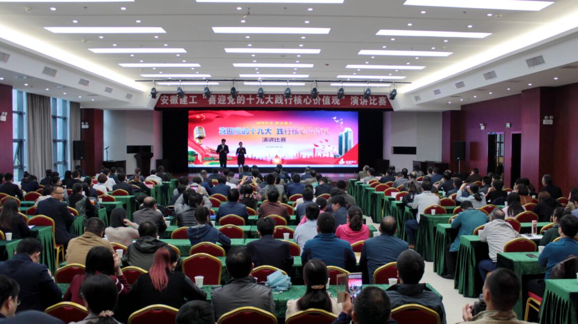 在主持人精彩的開場白之后演講比賽正式拉開序幕,參賽選手圍繞“喜迎黨的十九大,踐行核心價值觀”這一主題,結(jié)合各自工作和生活經(jīng)歷,借助自己設計制作的背景短片或PPT,用真摯的情感、生動的事例,聲情并茂、滿懷激情地講述了安徽建工人立足崗位,弘揚踐行集團核心價值觀的深切體會和感人故事,展現(xiàn)了身邊員工于平凡中奉獻青春、于艱苦中助力改革、于崗位中磨練尖兵的樸實情懷。比賽中,評委們圍繞參賽選手的演講內(nèi)容、演講技巧、演講效果、時間控制、脫稿情況等方面進行了現(xiàn)場綜合考評和打分,并現(xiàn)場宣布比賽結(jié)果;比賽結(jié)束后,領(lǐng)導評委嘉賓為獲獎選手進行了頒獎。