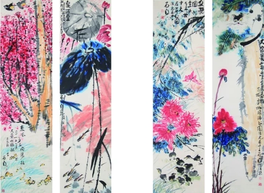 安徽二建 石德元 國畫作品《春夏秋冬》四條屏