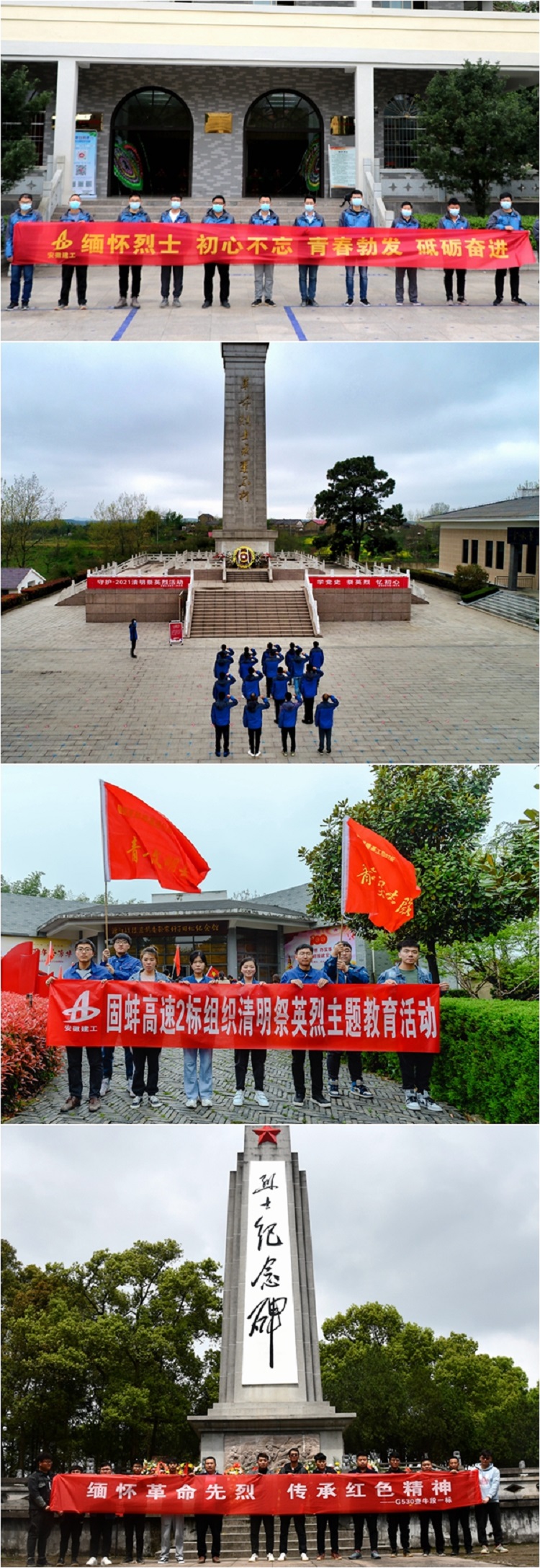 蒙城PPP項目黨支部組織黨員和職工來到蒙城縣革命烈士陵園掃墓祭奠,向革命烈士敬獻(xiàn)花籃,表達(dá)哀思;淮北片區(qū)黨支部組織黨員、團(tuán)員青年和職工瞻仰泗縣烈士陵園,銘記歷史,致敬革命先烈;合肥軌道交通3號線南延2標(biāo)項目黨支部前往新四軍江北指揮部開展黨史教育,重溫入黨誓詞,牢記初心使命;引江濟(jì)淮聯(lián)合黨支部追尋紅色足跡,在茶壺山烈士陵園紀(jì)念碑前,唱響國歌,靜思默哀;暢通二環(huán)(西南環(huán))項目黨支部組織開展“網(wǎng)上祭英烈”活動,廣大黨員、團(tuán)員青年和職工登陸網(wǎng)上紀(jì)念館,緬懷革命先烈,表達(dá)對英雄的敬意。