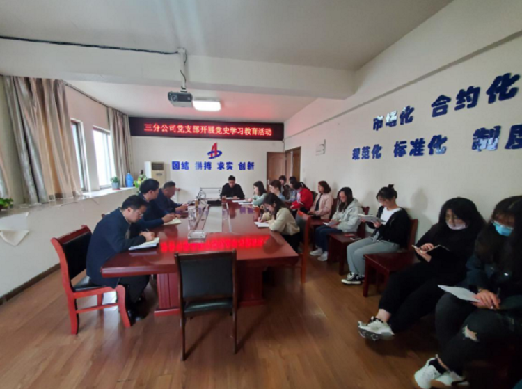 三分公司黨支部開展黨史學習教育活動,分公司機關(guān)全體人員參加,活動由支部書記陳習武主持。首先,陳習武帶領大家學習了二建黨發(fā)【2021】13號文《安徽二建公司黨委關(guān)于開展黨史學習教育的工作方案》,并就分公司黨支部的黨史學習教育活動做了詳細安排部署,要求全體黨員干部把思想和行動統(tǒng)一到集團、公司黨委的決策部署上來,高標準、高質(zhì)量完成黨史學習教育各項任務,努力做到學史明理、學史增信、學史崇德、學史力行,以優(yōu)異成績迎接建黨100周年。隨后,陳習武帶領大家上了一堂生動的黨史課?!皬纳虾J瘞扉T到嘉興南湖,一艘小小紅船承載著人民的重托、民族的希望,越過急流險灘,穿過驚濤駭浪,成為領航中國行穩(wěn)致遠的巍巍巨輪?!?。通過視頻和講解相結(jié)合,為大家敘述了從中國共產(chǎn)黨成立到建立新中國,28年間,黨召開了一次次重要會議。這些會議作出的決策,指引了中國革命的方向,推動了歷史進程,具有里程碑意義。大家紛紛表示,將從黨史中汲取智慧和力量,堅定信仰信念,進一步提高黨性修養(yǎng),不忘初心,以實際行動發(fā)揮好黨員干部的模范帶頭作用,積極投入到干事創(chuàng)業(yè)中去,為分公司的發(fā)展添磚加瓦。