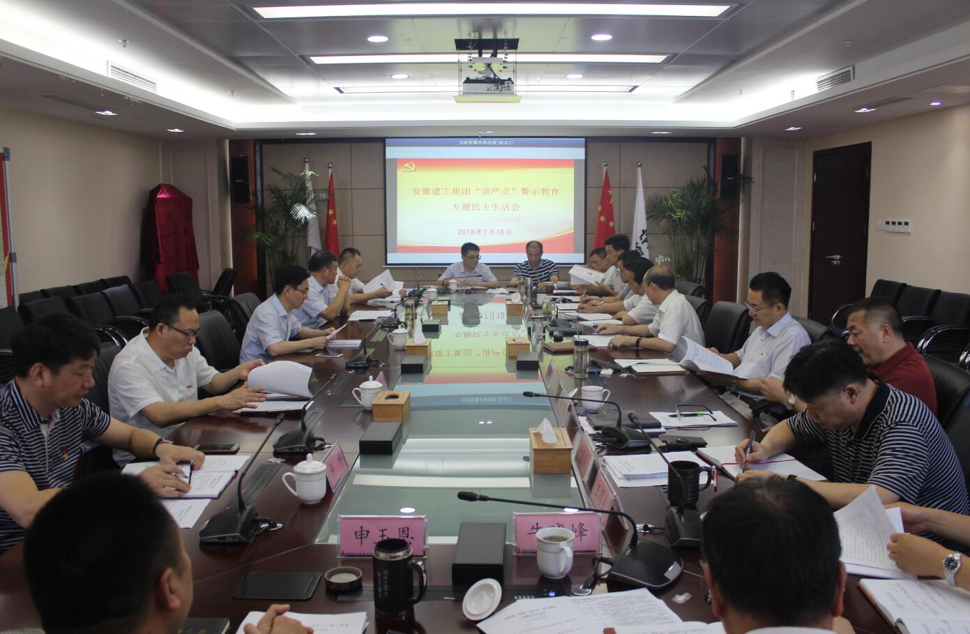 根據省委、省國資委黨委關于“講忠誠、嚴紀律、立政德”專題警示教育工作部署要求,7月10日上午,安徽建工集團黨委召開“講嚴立”警示教育專題民主生活會。省紀委、省監(jiān)委駐省國資委紀檢監(jiān)察組組長、省國資委黨委委員黃干,省國資委黨委“講嚴立”專題警示教育第一督導組組長李永江,及督導組全體成員到會指導。集團公司黨委書記、董事長趙時運主持會議,集團公司領導班子成員參加會議。
