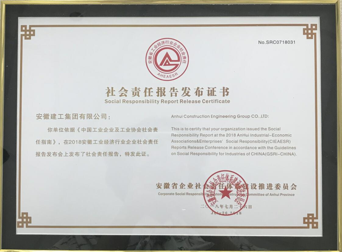 7月26日上午,2018年度安徽省企業(yè)社會責任報告發(fā)布會于合肥豐樂大酒店隆重舉行,包括安徽建工集團控股有限公司在內的共101家企業(yè)參與此次社會責任報告發(fā)布。