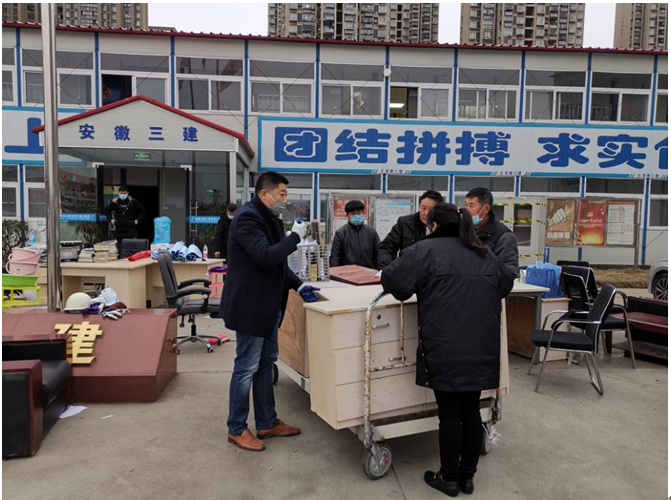 1月25日大年初一中午11:30,合肥市二院老年護(hù)理院項(xiàng)目留守經(jīng)理高瑞凱接市二院黨委電話,要求應(yīng)急征用項(xiàng)目辦公區(qū),盡快將項(xiàng)目辦公區(qū)整體移交合肥市二院做為新型肺炎疫情發(fā)熱門診及留觀病房。接到消息分公司立即向公司黨委做了匯報(bào)。安徽三建公司黨委當(dāng)即要求項(xiàng)目部堅(jiān)決服從合肥市疫情防治工作需要,馬上組織人員進(jìn)行搬遷,迅速配合合肥市二院做好項(xiàng)目部辦公區(qū)功能切換工作。公司黨委委員、紀(jì)委書記、工會(huì)主席李家保趕到到現(xiàn)場調(diào)度、指揮。