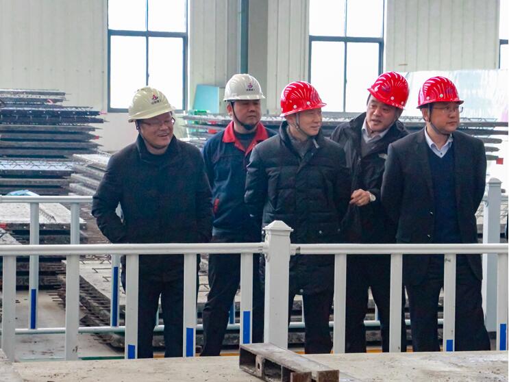 趙時(shí)運(yùn)一行一進(jìn)入廠區(qū),徑直來到井然有序忙碌的生產(chǎn)車間。在構(gòu)件生產(chǎn)線上,趙時(shí)運(yùn)詳細(xì)察看了裝配式建筑部品部件生產(chǎn)加工過程、混凝土成型細(xì)節(jié)質(zhì)量、軌道交通管片生產(chǎn)、車間安全文明管理以及生產(chǎn)工藝流程,詳細(xì)詢問了目前構(gòu)件廠的生產(chǎn)任務(wù)、生產(chǎn)能力、人員數(shù)量、經(jīng)濟(jì)效益、質(zhì)量安全控制情況以及二期投資建設(shè)用地情況,趙時(shí)運(yùn)給予了充分肯定,并對(duì)集團(tuán)公司裝配式建筑發(fā)展戰(zhàn)略、市場(chǎng)拓展規(guī)劃等給予了指導(dǎo)性意見。安徽三建副總經(jīng)理、工業(yè)公司總經(jīng)理王興明對(duì)下一步規(guī)劃目標(biāo)和發(fā)展思路等作了詳細(xì)匯報(bào)。