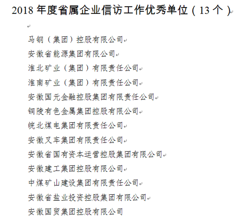 4月26日,安徽建工集團控股有限公司被安徽省人民政府國有資產監(jiān)督管理委員會授予“2018年度省屬企業(yè)信訪工作責任目標考核優(yōu)秀單位”榮譽稱號。