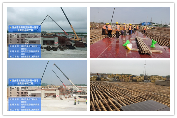 滁陽路橋梁項(xiàng)目完成右幅第一跨模板安裝,右幅第二跨預(yù)壓,右幅第三跨工字鋼方木鋪設(shè),右幅第四跨支架搭設(shè)。