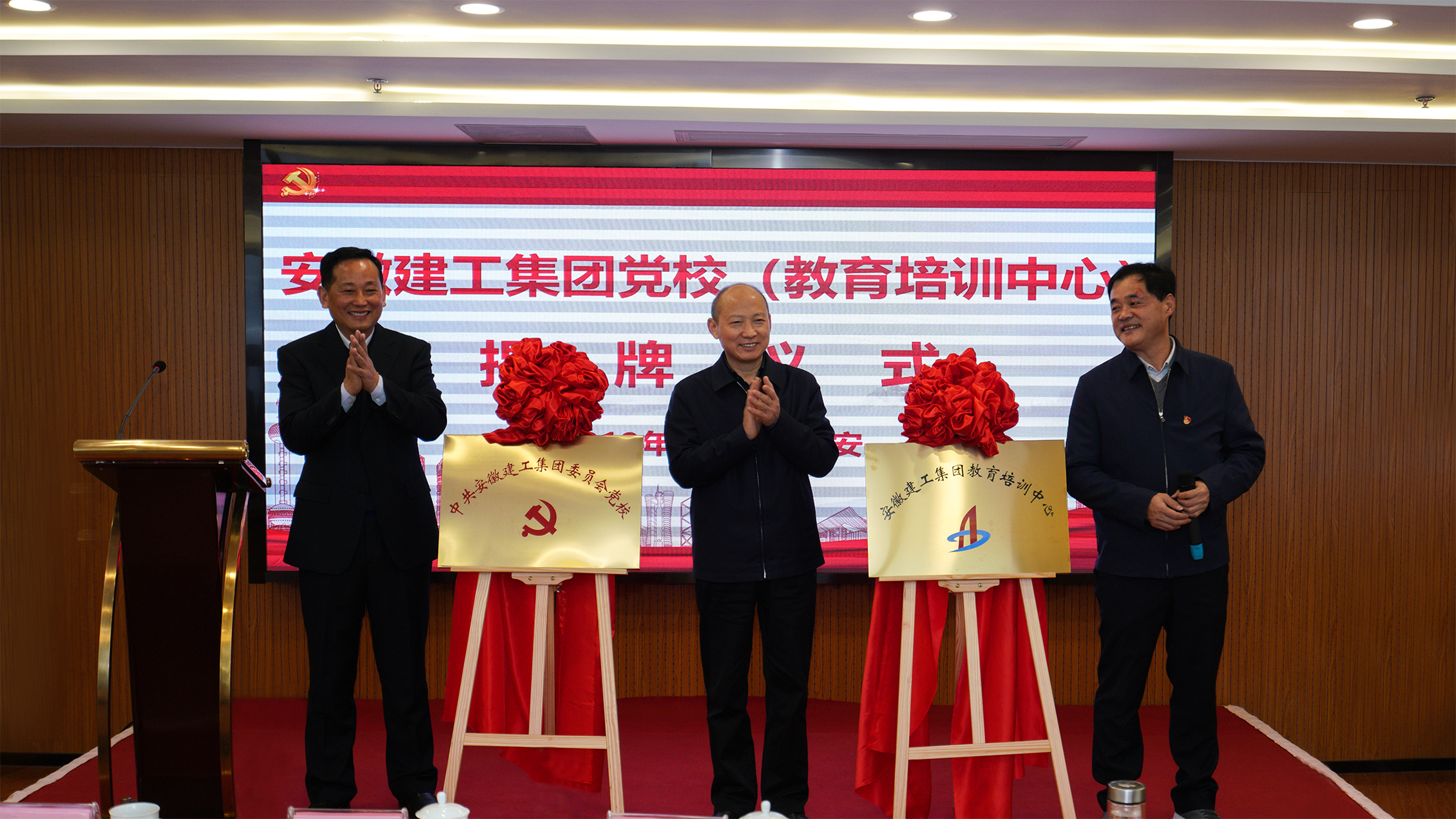 12月23日上午,安徽建工集團(tuán)黨校(教育培訓(xùn)中心)揭牌儀式在六安隆重舉行。建工控股黨委書(shū)記、董事長(zhǎng)趙時(shí)運(yùn),黨委副書(shū)記、黨校(教育培訓(xùn)中心)校長(zhǎng)(主任)牛曙東,黨委委員、副總經(jīng)理、總工程師、黨校(教育培訓(xùn)中心)副校長(zhǎng)(副主任)戴良軍共同為集團(tuán)黨校(教育培訓(xùn)中心)揭牌。趙時(shí)運(yùn)出席揭牌儀式并講話(huà),牛曙東致辭并提出具體要求,戴良軍主持揭牌儀式。建工控股、建工股份領(lǐng)導(dǎo)班子成員出席揭牌儀式。