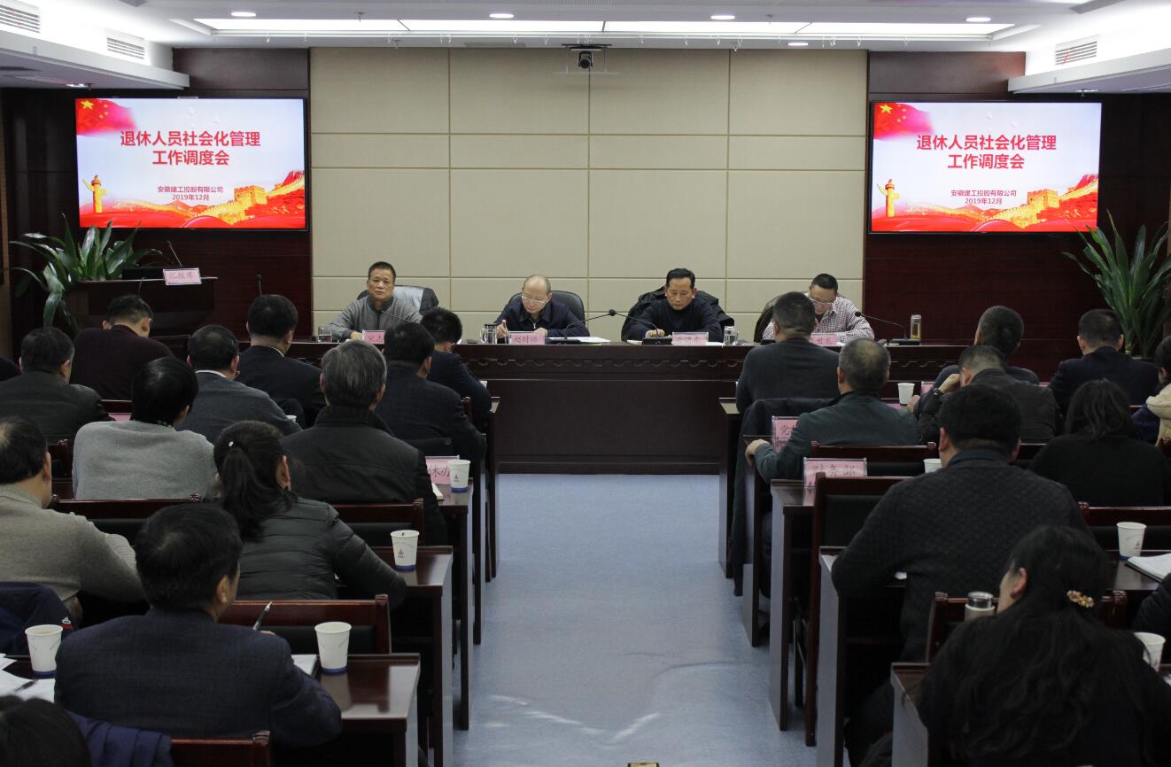 12月27日下午,安徽建工控股退休人員社會化管理工作調(diào)度會在安建大廈28樓會議室召開。建工控股黨委書記、董事長趙時運,黨委副書記牛曙東,紀委書記宋志華出席會議。集團退休人員社會化管理工作領導小組成員及所屬有關單位負責人、聯(lián)系人參加了會議。