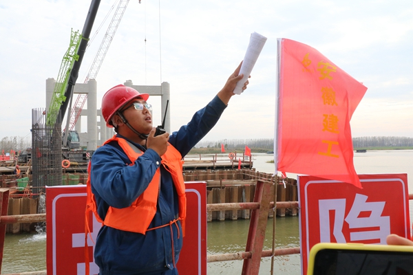 固蚌、蕪黃高速作為省委省政府規(guī)劃的“縣縣通高速”,將在2021年建成通車,這對于今年3月份項(xiàng)目才正式開工的全體建設(shè)者來說,無疑是個(gè)巨大挑戰(zhàn)。在淮河岸邊、澮河之上,青年黨員陸志康正在組織打樁機(jī)施工?!皾液犹卮髽蜷L2.6km,是安徽省首座組合梁系桿拱橋,引橋采用鋼板組合梁,建成后將成為澮河上的新地標(biāo),”他自信地說。不論是疫情防控后的復(fù)工復(fù)產(chǎn),還是抗洪期間,他都始終沖鋒在前,白天在一線蹲守,晚上研究解決問題的辦法。圓月初升,各個(gè)工位上的聚光燈,點(diǎn)燃寂靜夜空,將夜晚照得如同白晝明亮,陸志康乘著夜色仍在混凝土澆筑工點(diǎn),忘記了時(shí)間,只為了一個(gè)目標(biāo),就是要把項(xiàng)目又好又快建成。