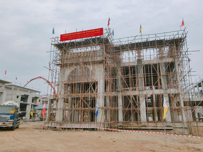 阿富汗駐巴使館項(xiàng)目,位于伊斯蘭堡周恩來大道北側(cè),總建筑面積18834.44平方米,于2018年9月開工,項(xiàng)目部全體員工克服現(xiàn)場(chǎng)無市政用電、施工圖紙不全、高溫炎熱天氣與雨季施工等困難,特別是2020年遭遇新冠疫情,巴基斯坦分公司積極協(xié)調(diào)努力,聯(lián)系包機(jī)分批接回滯留國(guó)內(nèi)人員,網(wǎng)格化管理屬地用工,在嚴(yán)密落實(shí)疫情防控措施的前提下迅速推進(jìn)工程進(jìn)度,終于完成封頂任務(wù)。