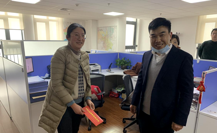 2月5日下午,安建地產(chǎn)黨委副書(shū)記、總經(jīng)理?xiàng)詈ow慰問(wèn)天長(zhǎng)公司職工徐園園。