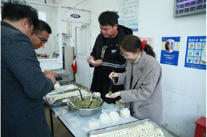 蕪黃03標(biāo)項(xiàng)目春節(jié)前,職工食堂組織了包餃子活動(dòng),大家圍在餐桌旁有說有笑地開始準(zhǔn)備,有人和面、有人搟皮兒、有人包餃子,分工明確又配合默契。大家在歡樂、溫馨的氣氛中相互幫助,密切配合,個(gè)個(gè)大顯伸手,充分展示著自己的手藝,互相傳授著包餃子的經(jīng)驗(yàn),在歡聲笑語襯托出濃濃的春節(jié)氣氛。