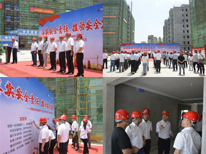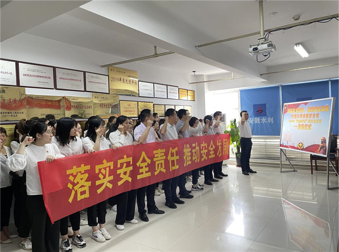 今年6月是第20個(gè)全國(guó)“安全生產(chǎn)月”,主題是“落實(shí)安全責(zé)任,推動(dòng)安全發(fā)展”。為深入貫徹落實(shí)習(xí)近平總書(shū)記關(guān)于安全生產(chǎn)重要論述,牢固樹(shù)立安全發(fā)展觀,提升公司全員安全意識(shí),增強(qiáng)安全生產(chǎn)責(zé)任落實(shí),推進(jìn)公司安全文化的建設(shè),為慶祝建黨100周年?duì)I造良好的安全環(huán)境,安徽水利于6月1日在全公司范圍內(nèi)開(kāi)展安全宣誓,拉開(kāi)“安全生產(chǎn)月”活動(dòng)序幕。安徽水利黨委書(shū)記、董事長(zhǎng)、安委會(huì)主任張曉林出席活動(dòng)并領(lǐng)誓。