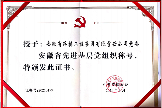值此建黨100周年之際,安徽路橋集團黨委榮獲安徽省“先進基層黨組織”稱號,既是表彰,更是激勵。關山初度塵未洗,策馬揚鞭再奮蹄。凝心聚力、勵精圖治的安徽路橋集團黨委,正以百倍的信心和干勁,帶領全體干部職工緊扣“百億路橋集團”目標,奮力譜寫公司改革發(fā)展時代新篇章!