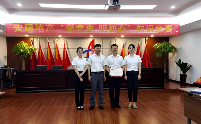為慶祝建黨100周年,提升廣大職工學黨史的熱情和成效,弘揚黨的優(yōu)良傳統(tǒng),砥礪初心使命,7月8日下午,安建地產(chǎn)在安建大廈21樓第三會議室開展“學黨史 明初心”知識競賽,同興公司、阜陽公司、固鎮(zhèn)公司、淮北公司、瑤海公司、沛縣公司以及機關7個黨支部21名選手參賽。公司領導出席并為獲獎隊伍頒獎。此次活動的開展,旨在引導廣大黨員干部職工學史明理、學史增信、學史崇德、學史力行,進一步增強基層黨組織的凝聚力和戰(zhàn)斗力,激勵黨員堅定理想信念,增強歷史責任感和使命感。