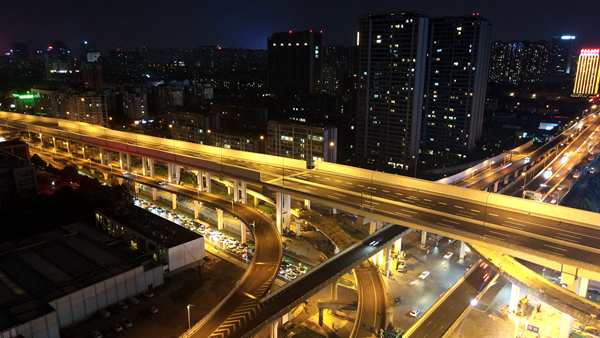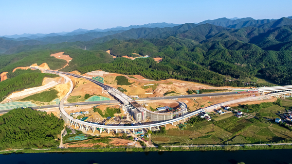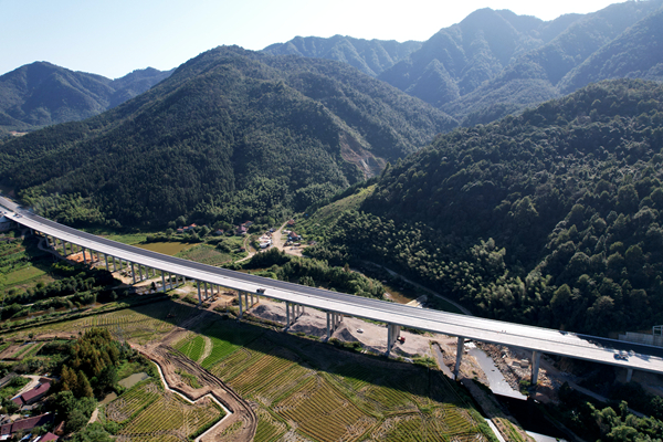 進(jìn)入9月,位于皖南山區(qū)的安徽路橋道路分公司宣涇高速?zèng)芸h樞紐互通項(xiàng)目施工現(xiàn)場(chǎng),呈現(xiàn)出白天一片熱火朝天、夜晚依然燈火通明的大干景象。遠(yuǎn)遠(yuǎn)望去,只見(jiàn)立體式的互通環(huán)環(huán)相扣,一排排高低整齊的滿(mǎn)堂支架沿著山谷向四方輻射,在青山映襯之下,頗為壯觀。