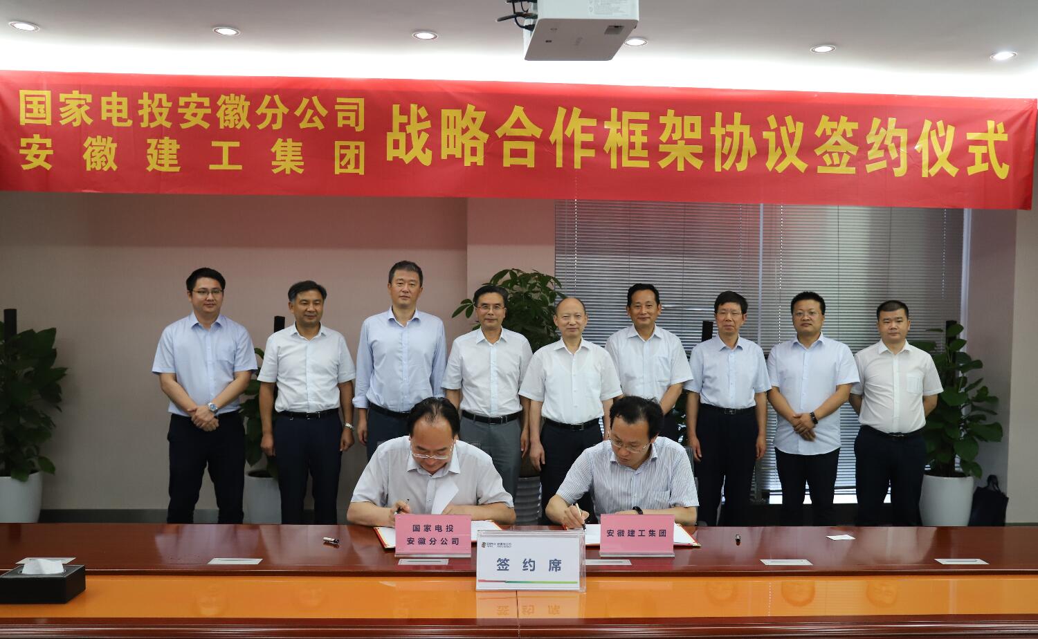國家電投安徽分公司黨委委員、總經(jīng)理助理、綜合部總經(jīng)理聶品及有關(guān)部門負責人,安徽建工集團黨委副書記牛曙東,黨委委員、股份公司董事長王厚良及有關(guān)部門負責人出席簽約儀式。