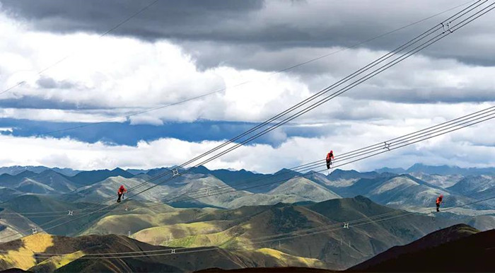 圖為2021年6月11日,國家電網(wǎng)四川送變電公司黨員先鋒隊(duì)員對(duì)四川省甘孜州兩河口水電站500千伏送出工程線路進(jìn)行消缺驗(yàn)收。 國務(wù)院國資委供圖 劉湘釩/攝