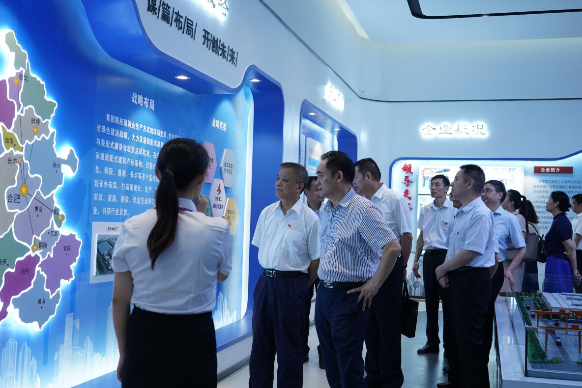 會前,與會人員實地參觀了安徽建工建筑工業(yè)公司展示中心、一線生產(chǎn)車間、黨員活動室及宣傳文化走廊等陣地場所。
