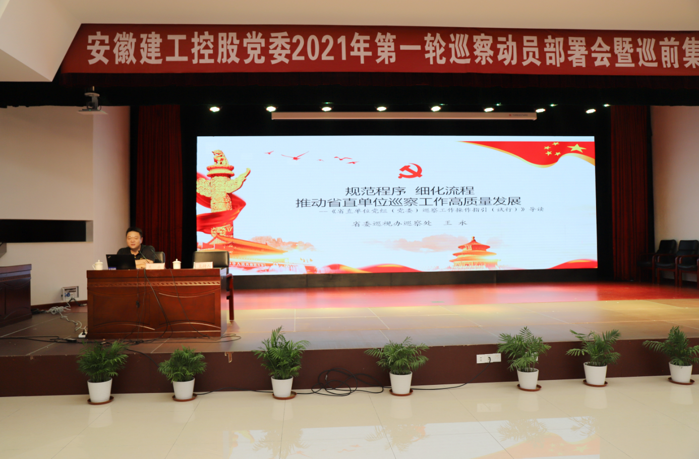 8月20日,建工控股黨委召開2021年第一輪巡察動員部署會暨巡前集中學(xué)習(xí)培訓(xùn)班,深入學(xué)習(xí)貫徹中央及省委關(guān)于開展巡察工作的指導(dǎo)意見,認(rèn)真落實2021年省直單位巡察工作推進(jìn)會議精神,動員部署集團(tuán)2021年第一輪巡察工作并開展巡察工作集中培訓(xùn),正式啟動集團(tuán)新一輪巡察工作。建工控股黨委書記、董事長、黨委巡察工作領(lǐng)導(dǎo)小組組長趙時運(yùn)出席會議并作動員講話。建工控股黨委委員、紀(jì)委書記、黨委巡察工作領(lǐng)導(dǎo)小組副組長王汪苗主持會議,建工控股、建工股份領(lǐng)導(dǎo)班子成員、集團(tuán)黨委巡察工作領(lǐng)導(dǎo)小組成員出席會議。