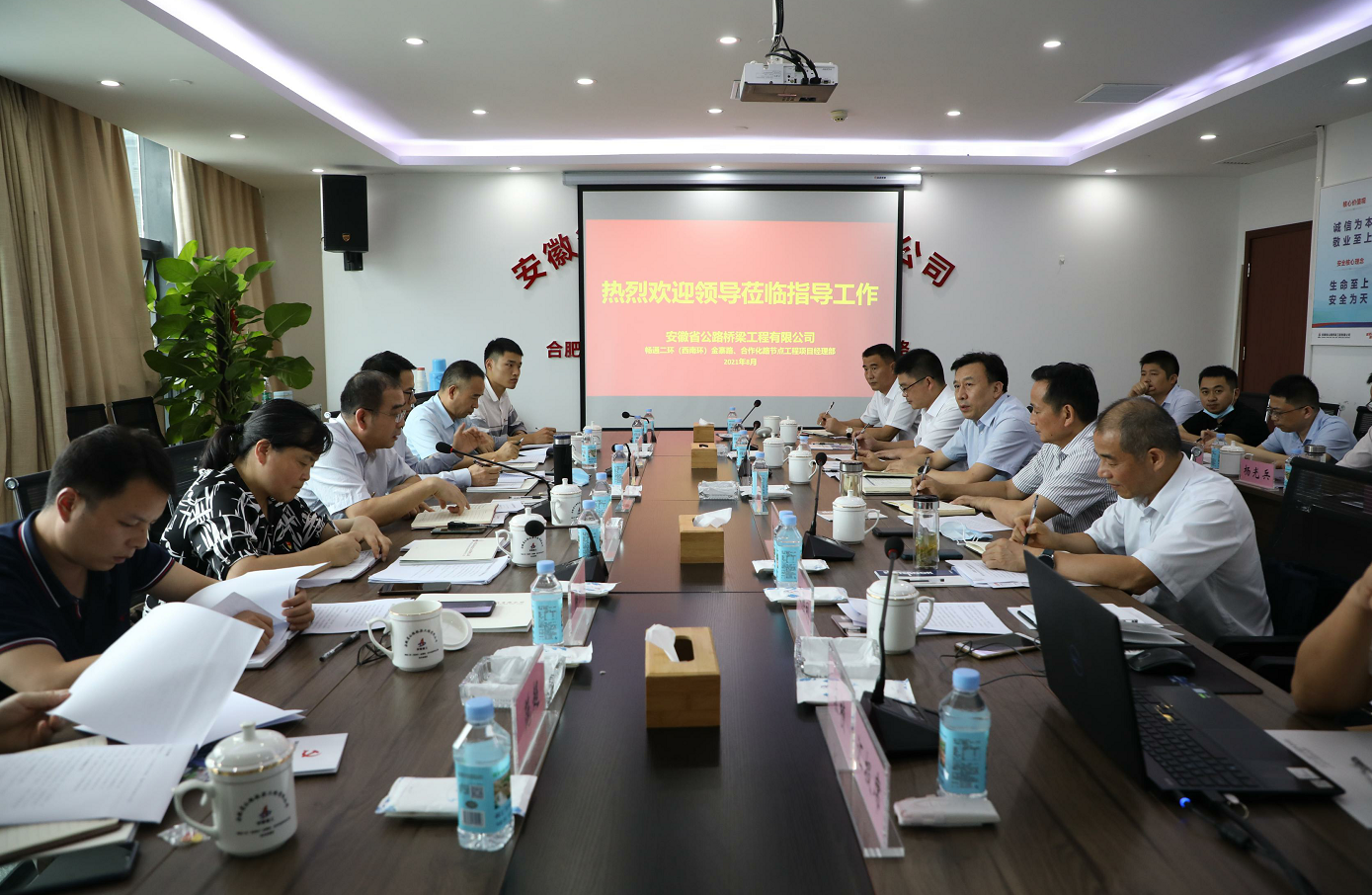 8月24日下午,省委組織部城市組織處處長、一級調(diào)研員張慶峰,省國資委黨建工作處處長馬潤華一行冒雨到集團(tuán)所屬安徽路橋調(diào)研指導(dǎo)國企與非公企業(yè)黨建聯(lián)建試點(diǎn)工作。省委組織部城市組織處副處長彭曉菁,以及省委、市委組織部城組處、省國資委黨建工作處相關(guān)人員參加調(diào)研。建工控股黨委副書記、工會主席牛曙東,黨委委員、紀(jì)委書記王汪苗,建工股份黨委副書記徐文聯(lián)陪同調(diào)研并出席座談會。