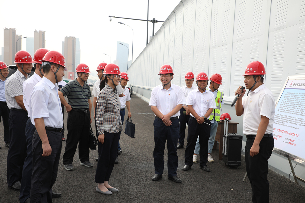 王煒一行來到集團(tuán)本部和安徽路橋承建的合肥市暢通二環(huán)金寨路、合作化路節(jié)點工程項目現(xiàn)場,聽取了相關(guān)人員介紹,詳細(xì)了解集團(tuán)企業(yè)發(fā)展情況和黨建工作,以及國企民企聯(lián)建雙方以工程項目為載體,開展黨建聯(lián)建工作情況。她充分肯定了集團(tuán)及安徽路橋開展國企與民企黨建聯(lián)建試點工作取得的成效。她指出,開展國有企業(yè)與民營企業(yè)黨建聯(lián)建工作是可為之舉、必為之舉、有為之舉。要聚焦加強(qiáng)企業(yè)黨組織規(guī)范化建設(shè)目標(biāo),通過黨建聯(lián)建,更好發(fā)揮黨組織在服務(wù)企業(yè)決策、開拓市場、革新技術(shù)、提高效益等方面的作用,把黨的政治優(yōu)勢、組織優(yōu)勢轉(zhuǎn)化為企業(yè)發(fā)展優(yōu)勢。